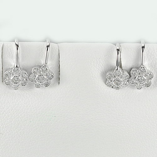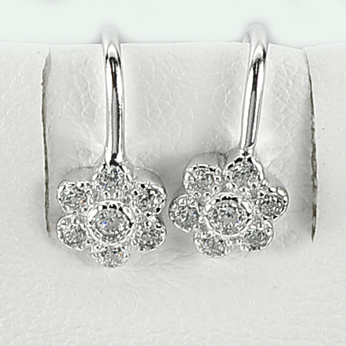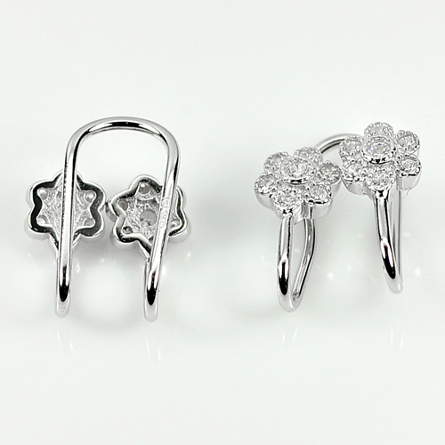 Nice Flower Design Round White CZ Real 925 Sterling Siver Jewelry Earrings
