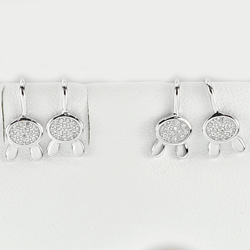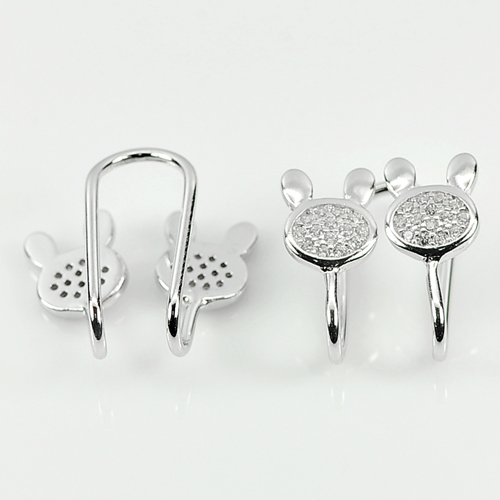 2.50 G. Rabbit Design White CZ Real 925 Sterling Silver Cuff Jewelry Earrings