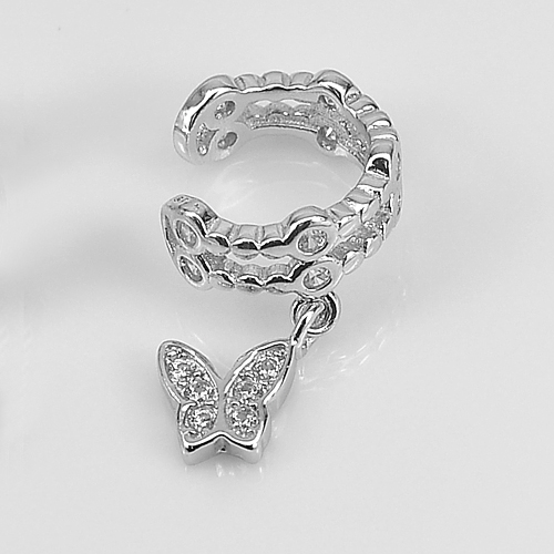 2.90 G. Round Shape White CZ Real 925 Sterling Silver Clip Earrings 11.3 x 5 Mm.