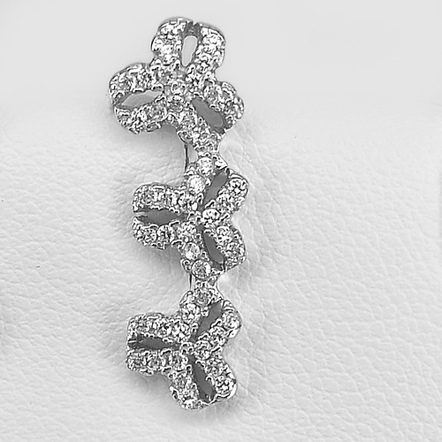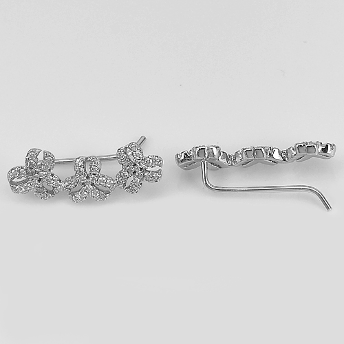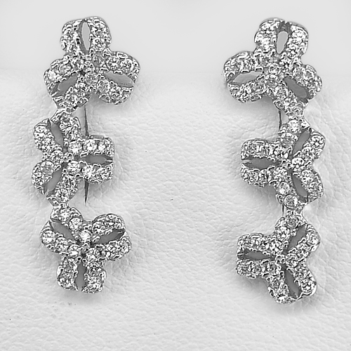2.70 G. Round White CZ Real 925 Sterling Silver Jewelry Earrings Design Bow