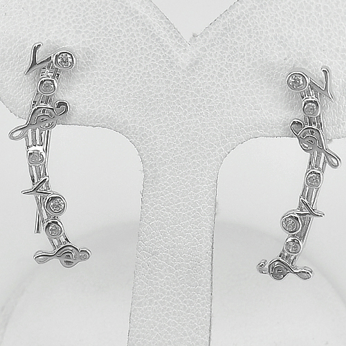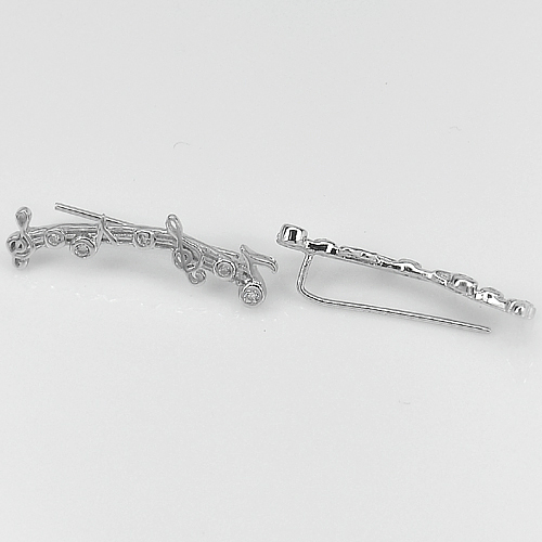 2.40 G. Musical Notes Design Round White CZ Real 925 Sterling Siver Earrings
