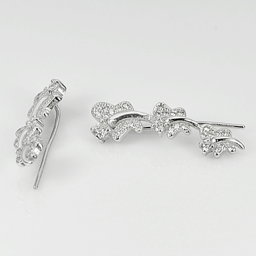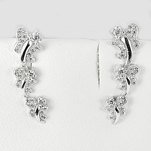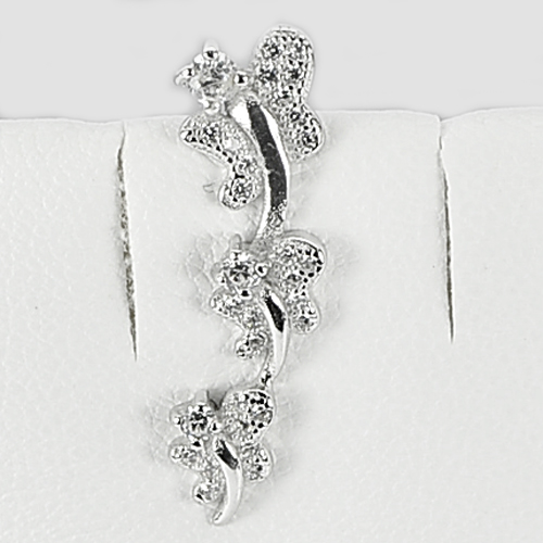 2.40 G. Round Shape White CZ Real 925 Sterling Silver Earrings 24 x 7 Mm.