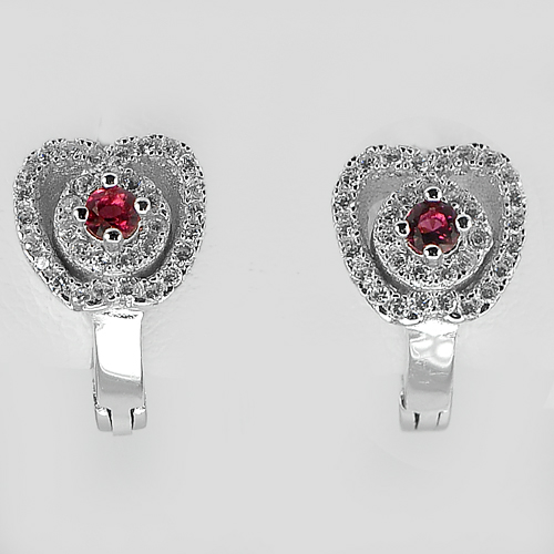 Real 925 Sterling Silver Hoop Earrings Jewelry Attractive Round Red CZ