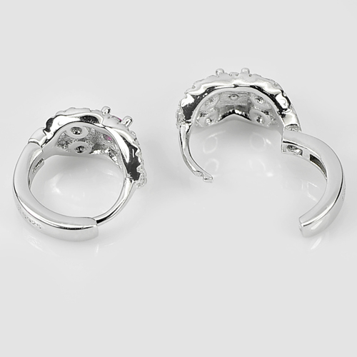 3.40 G. Round Shape Pink And White CZ Real 925 Sterling Silver Jewelry Earrings