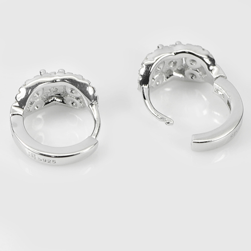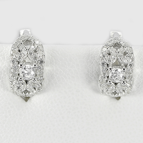 3.40 G.Round Shape White CZ Real 925 Sterling Silver Earrings Jewelry 12 x 6 Mm.