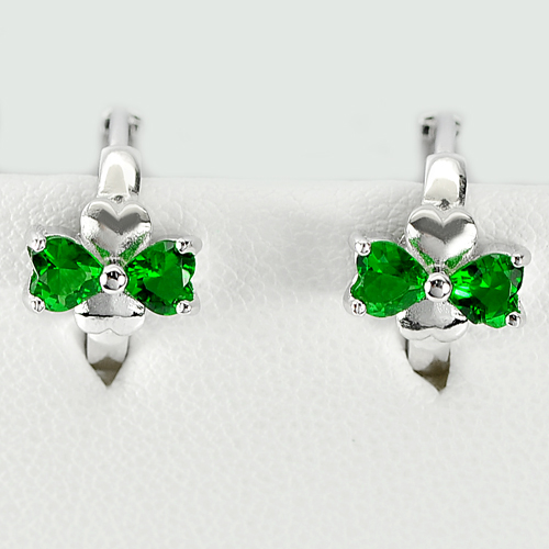 2.90 G. Heart Shape Green CZ Real 925 Sterling Silver Earrings Jewelry 13 x 10Mm