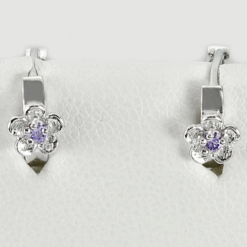Round Shape Purple CZ Flower Design Real 925 Sterling Silver Jewelry Earrings
