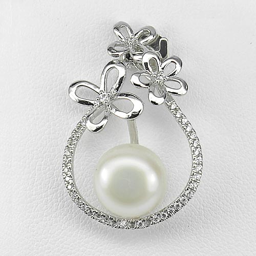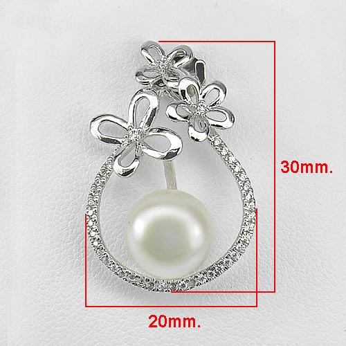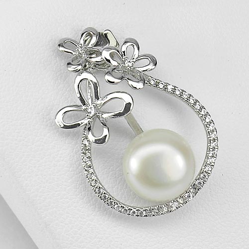 925 Sterling Silver Pendant Jewelry with Natural White Pearl and CZ 3.55 G.