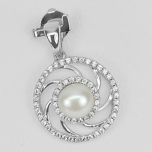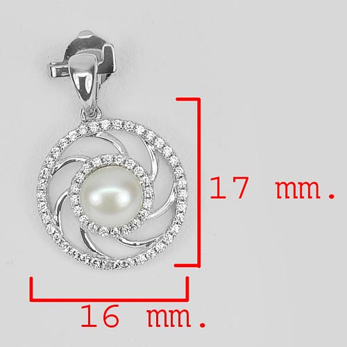 1.69 G. Real 925 Sterling Silver Pendant Natural White Pearl with CZ White Round