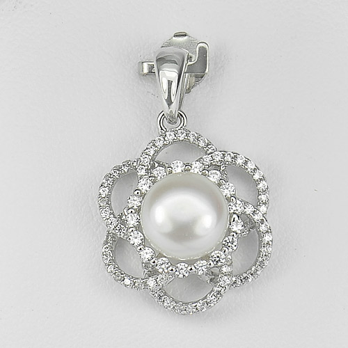 925 Sterling Silver Pendant Jewelry with Natural White Pearl and CZ 3.16 G.