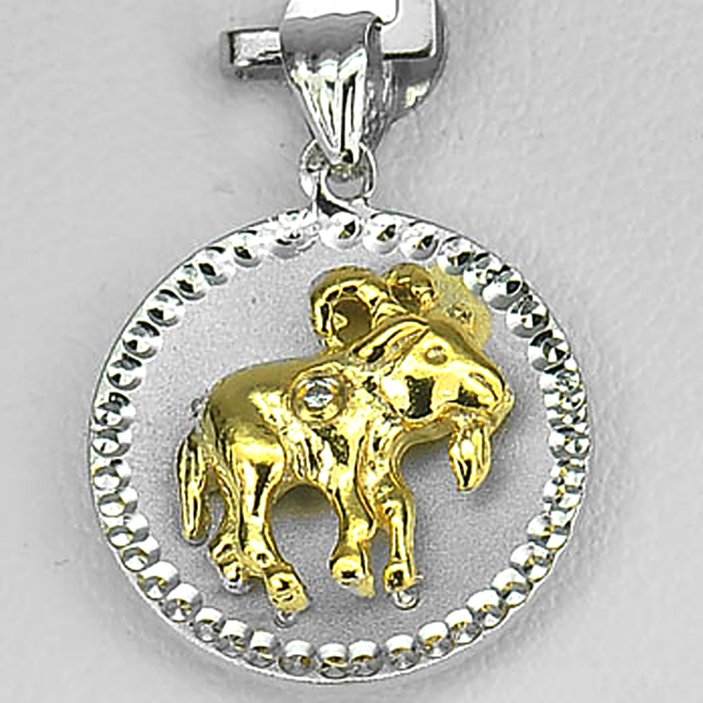 925 Sterling Silver Two Color Pendant 2.20 G. Zodiac Animal For Sign Goat