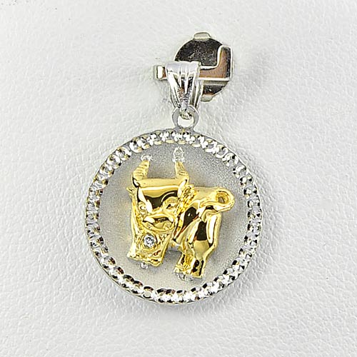 Zodiac Animal For Sign Cow Real 925 Sterling Silver Two Color Pendant 2.10 G.