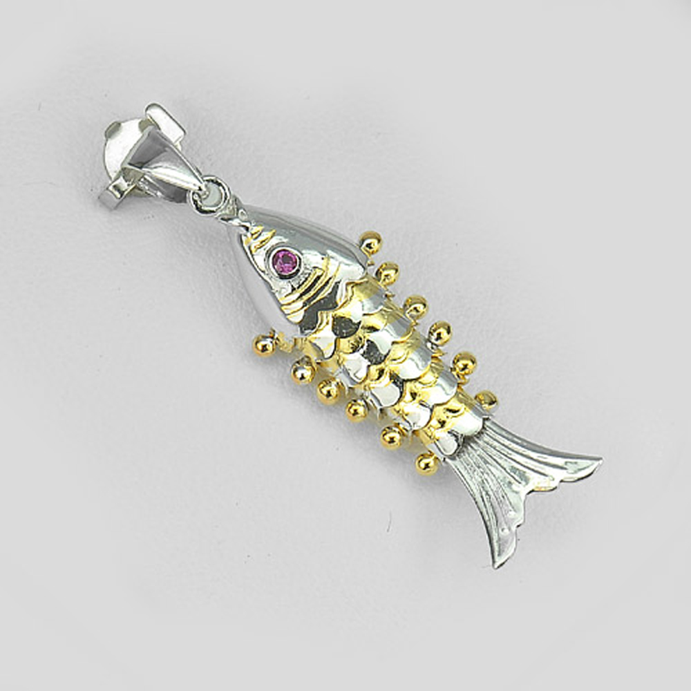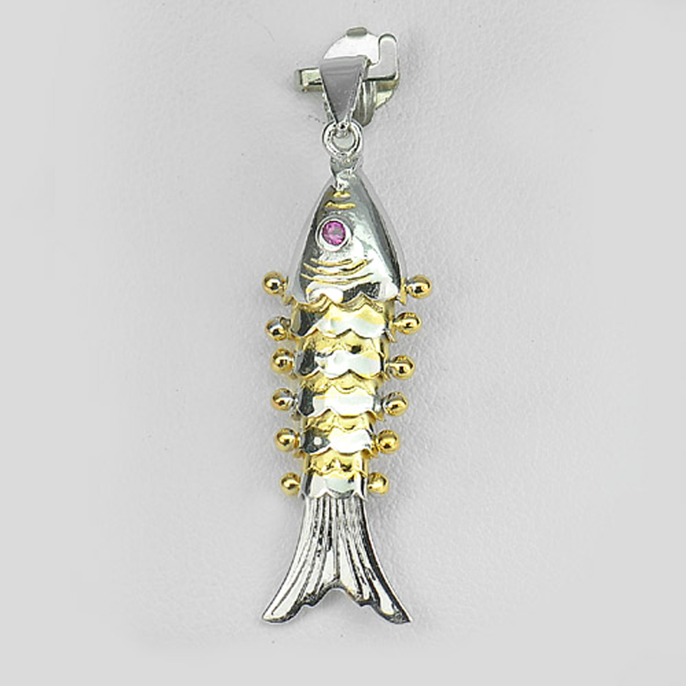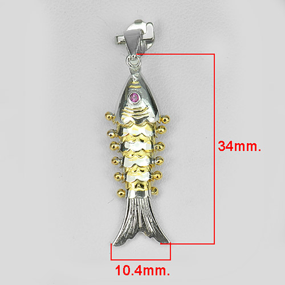 925 Sterling Silver Yellow Gold Pendant Jewelry Fish Design Size 34 x 10.4 Mm.