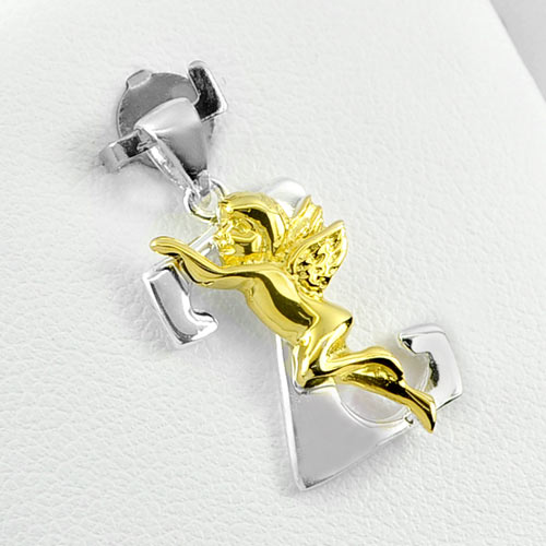 1.72 G. 925 Sterling Silver Two Color Jewelry Pendant Cupid on Alphabet Z