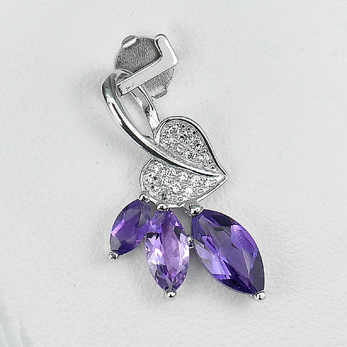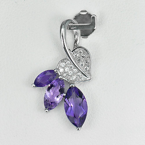 925 Sterling Silver Pendant 1.47 G. Natural Gemstone Purple Amethyst with CZ