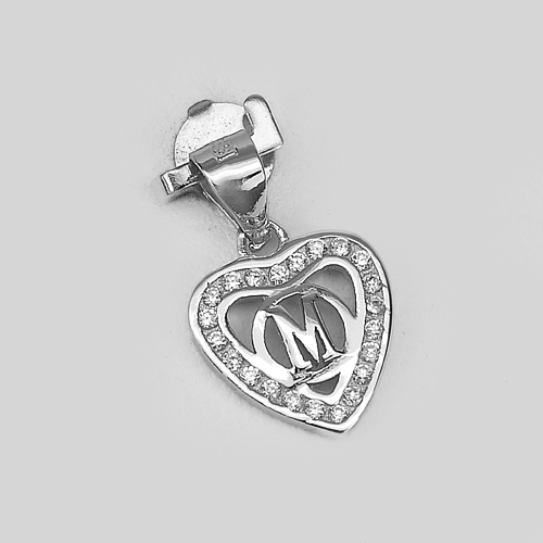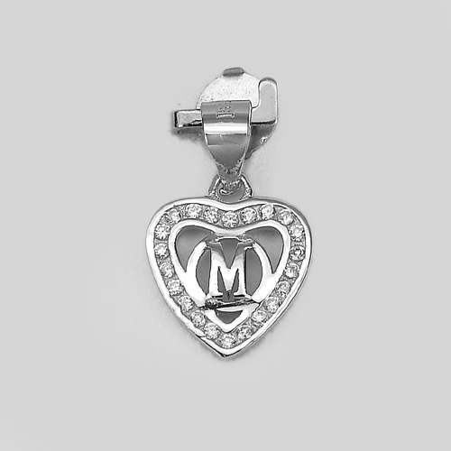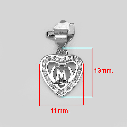 925 Sterling Silver Pendant Jewelry Initial Alphabet M in Heart 1 Pc/$3.99