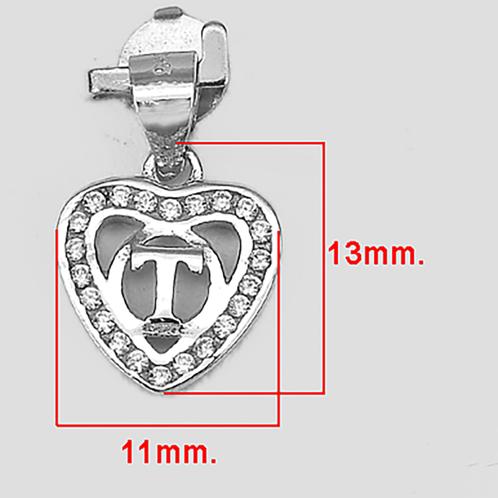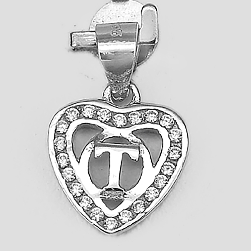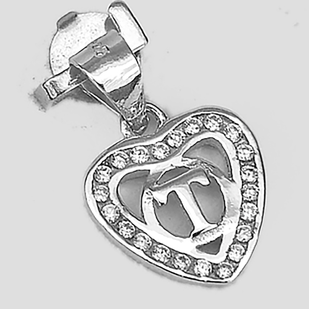 925 Sterling Silver Pendant Jewelry Initial Alphabet T in Heart 1 Pc/$3.99