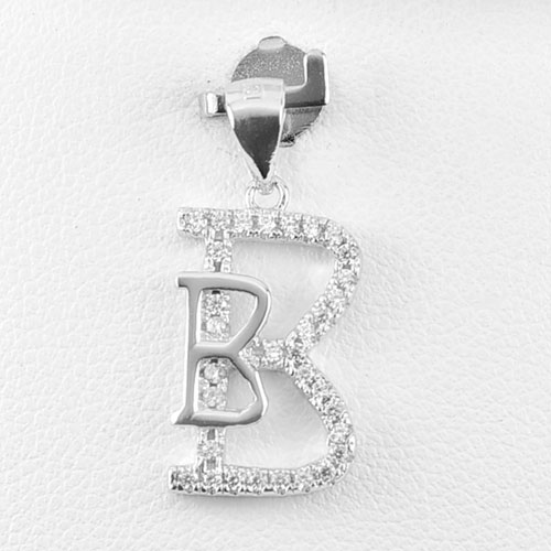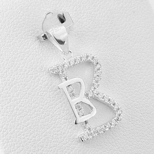 925 Sterling Silver Jewelry Initial Alphabet Double B Pendant with CZ 1.32 G.