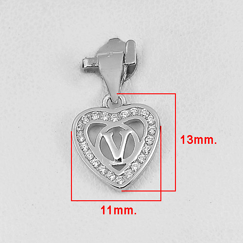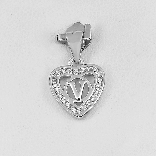 Real 925 Sterling Silver Initial Alphabet V in Heart Pendant Round White CZ