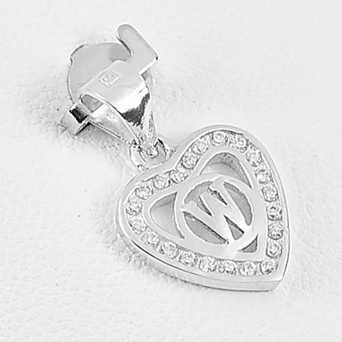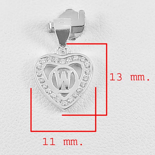 0.97 G. Real 925 Sterling Silver Initial Alphabet W in Heart Pendant with CZ