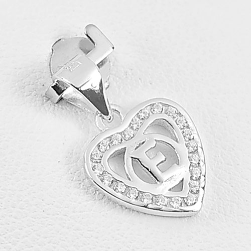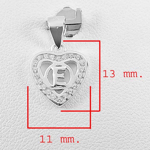 0.94 G. Real 925 Sterling Silver Pendant Initial Alphabet E in Heart with Cz