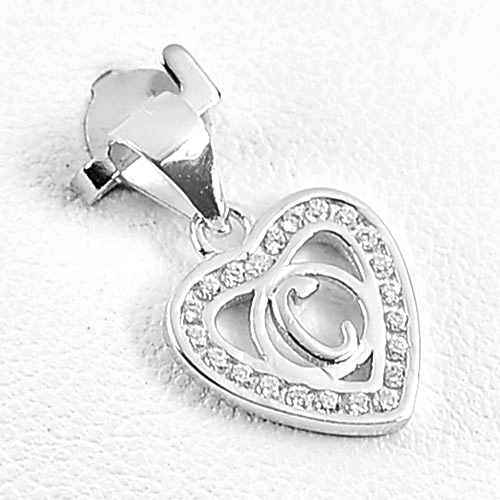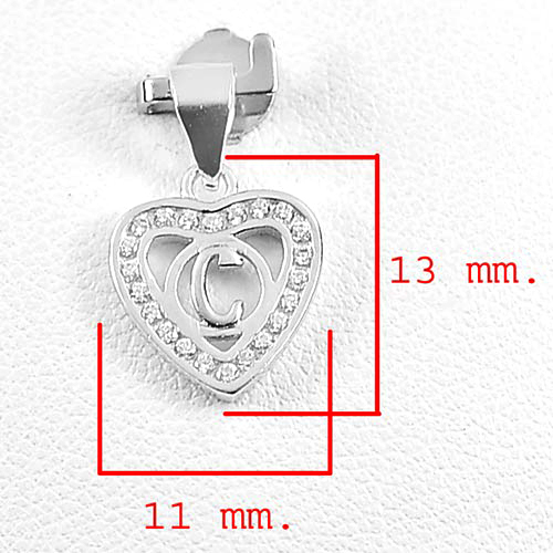 Real 925 Sterling Silver Jewelry Pendant Initial Alphabet C in Heart with Cz