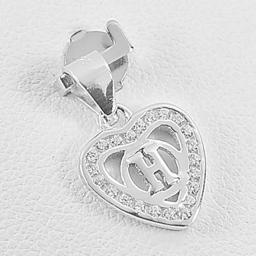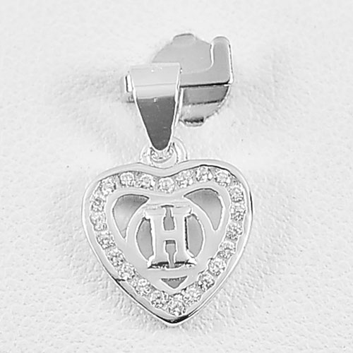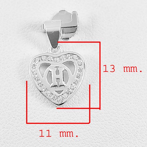 Real 925 Sterling Silver Jewelry Initial Alphabet H in Heart Pendant 0.98 G.