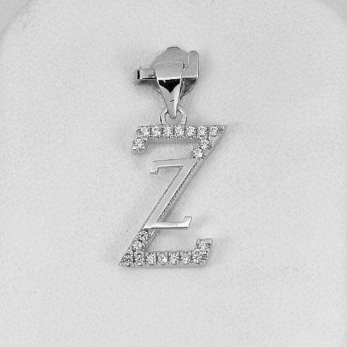 1.23 G. White CZ Real 925 Sterling Silver Initial Alphabet Double Z Pendant