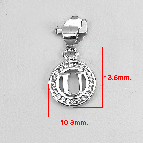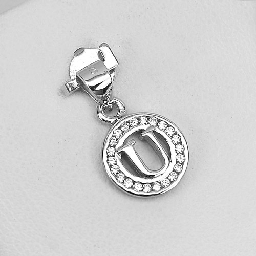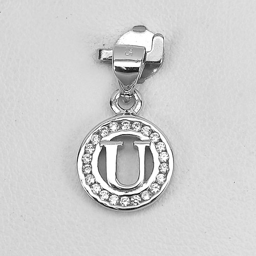Initial Alphabet U in Circle Jewelry Real 925 Sterling Silver Pendant 0.87 G.
