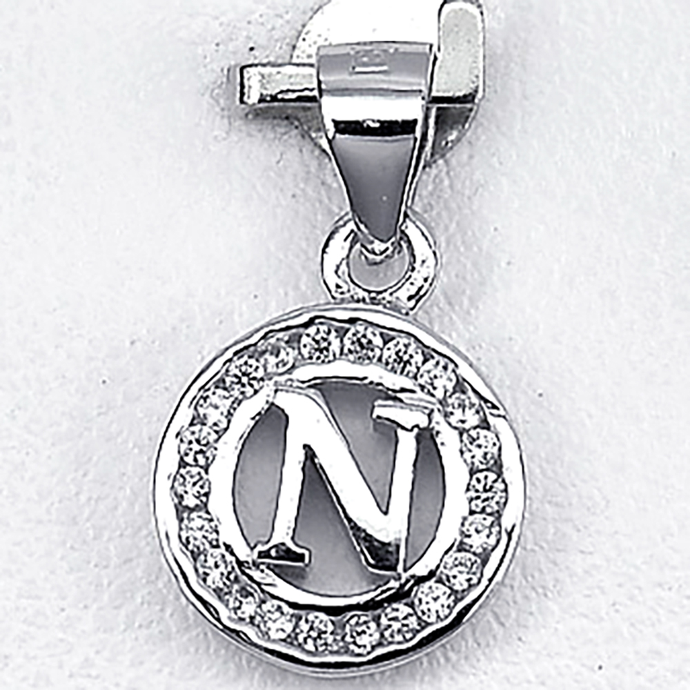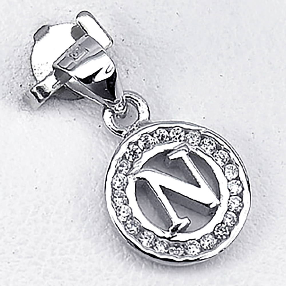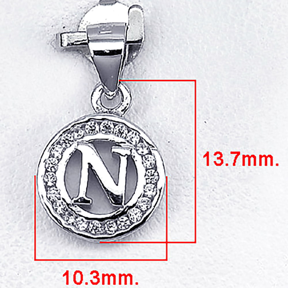 Initial Alphabet N in Circle Jewelry Real 925 Sterling Silver Pendant 1.01 G.
