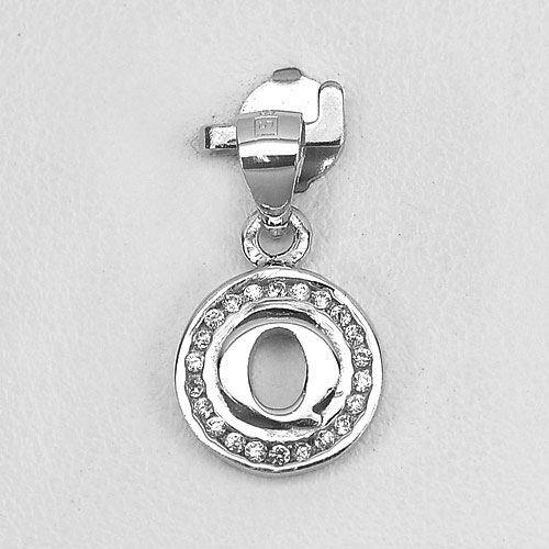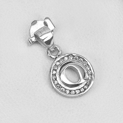 925 Sterling Silver Pendant Jewelry Initial Alphabet Q in Circle with CZ 1.09 G.
