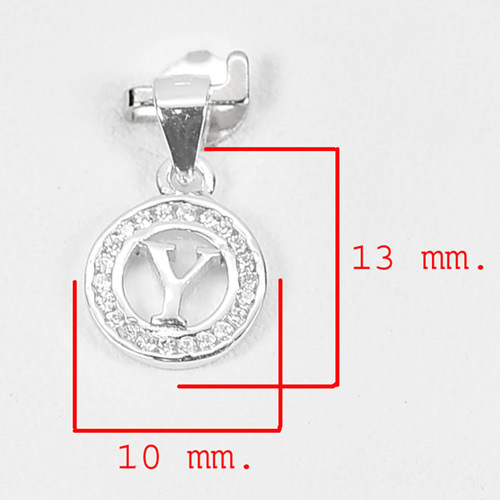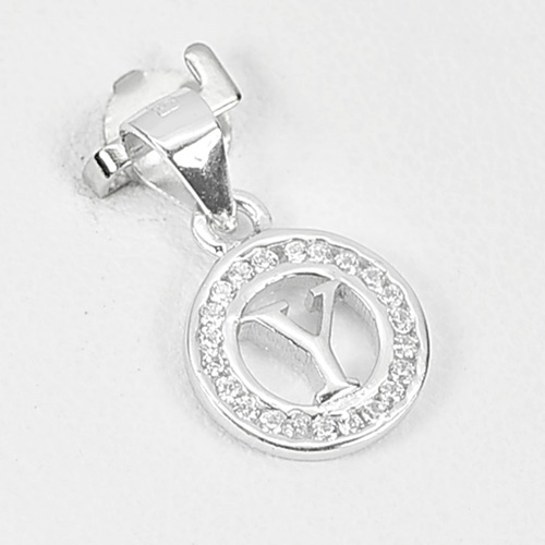 0.89 G. Initial Alphabet Y in Circle with CZ Real 925 Sterling Silver Pendant