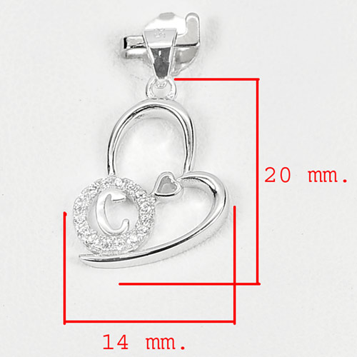 925 Sterling Silver Pendant Jewelry with Cz Initial Alphabet C in Heart