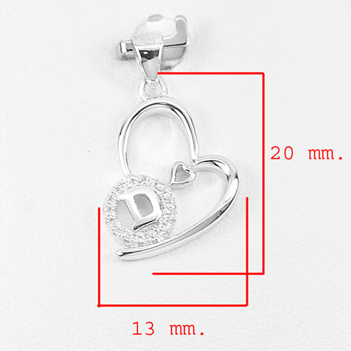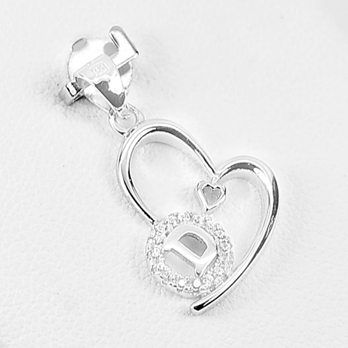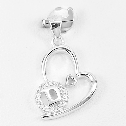 Real 925 Sterling Silver Jewelry Initial Alphabet D in Heart Pendant CZ 1.17 G.