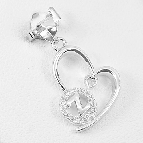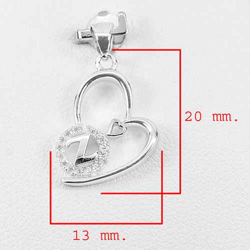 925 Sterling Silver Pendant Jewelry with Cz Initial Alphabet Z in Heart Design