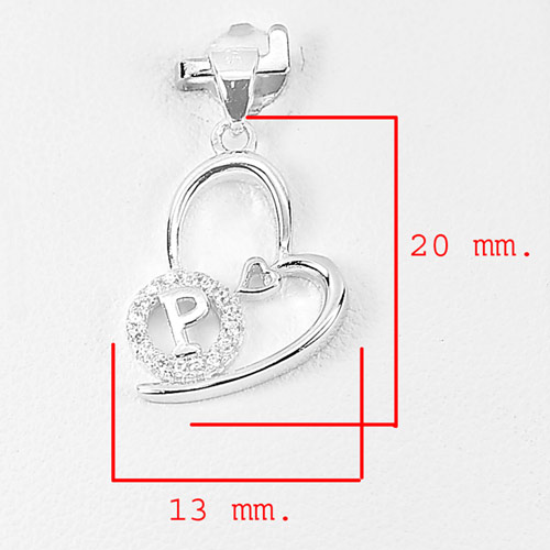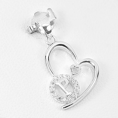 1.12 G. Initial Alphabet P in Heart with Cz Real 925 Sterling Silver Pendant
