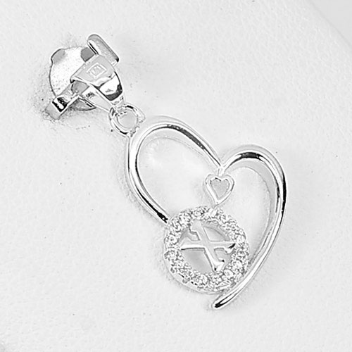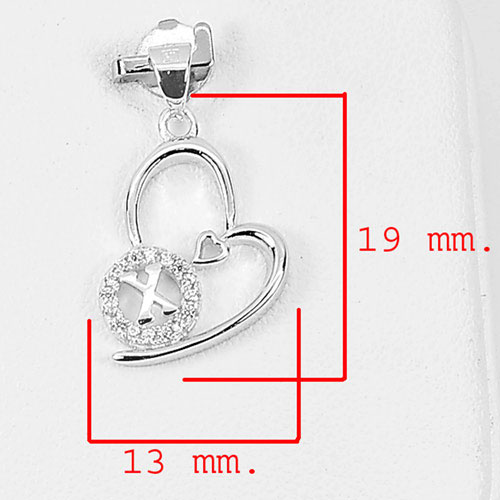 925 Sterling Silver Pendant Jewelry with CZ Initial Alphabet X in Heart 1.10 G.