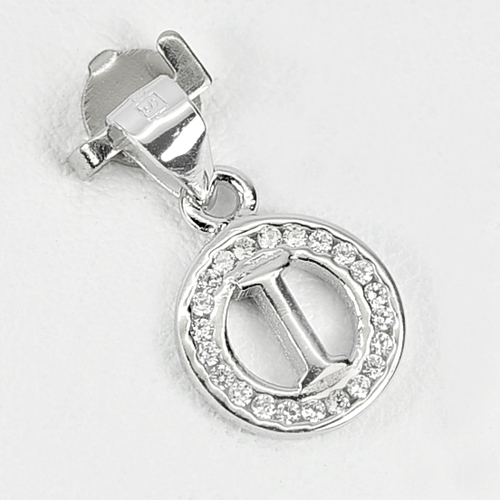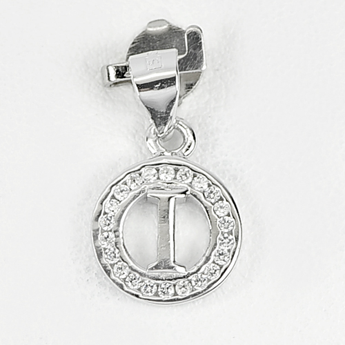 925 Sterling Silver Pendant Jewelry with CZ 1.10 G. Letter I in Circle Design
