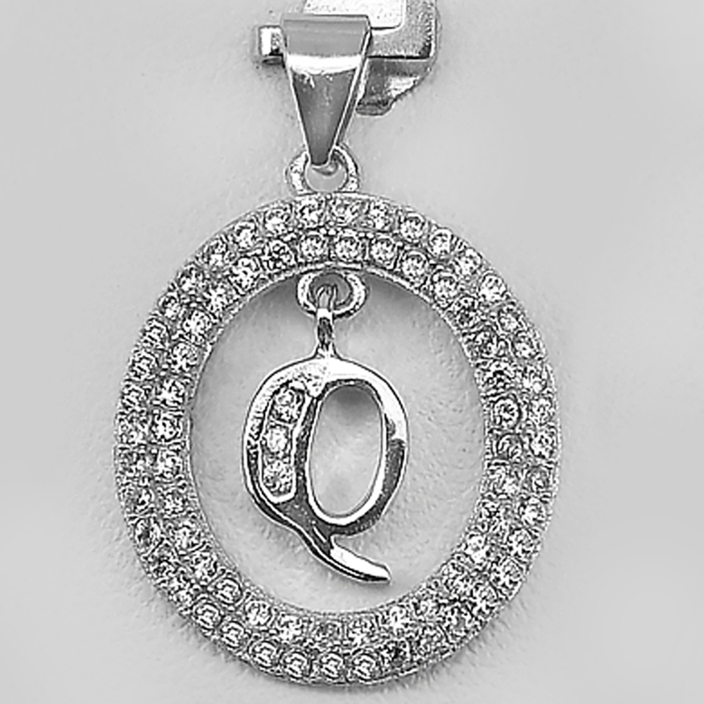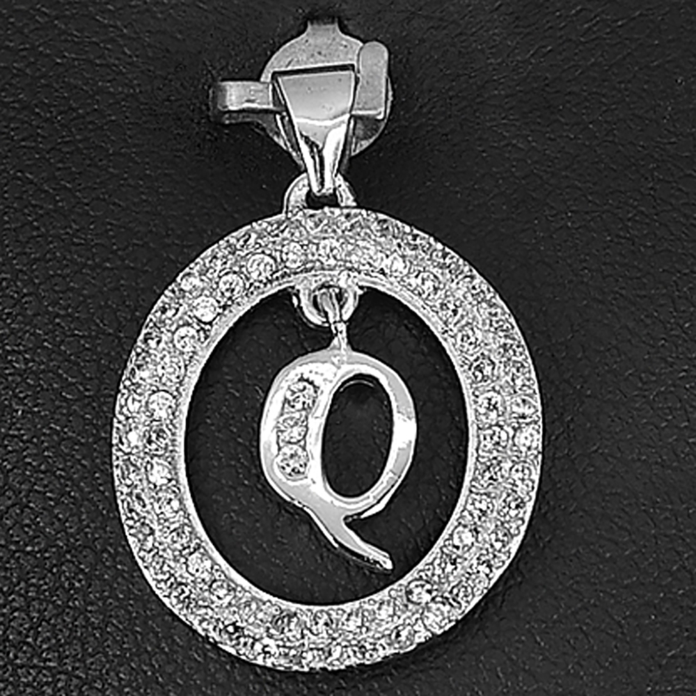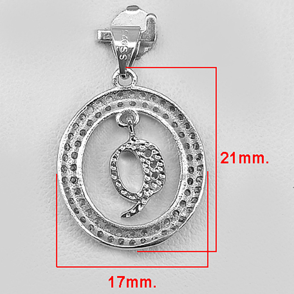 925 Sterling Silver Pendant Jewelry with CZ 21 x 17 Mm. Letter Q in Oval Halo