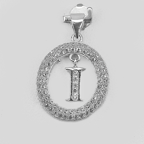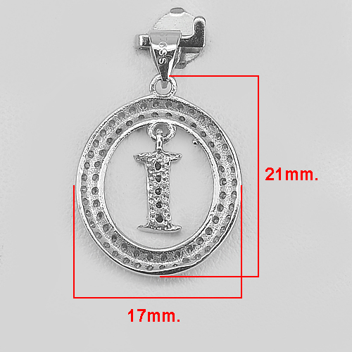 Sterling Silver Jewelry Pendant 1.90 G. Letter I in Oval Halo Design Thailand