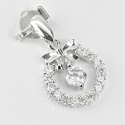 925 Sterling Silver Jewelry Pendant Ribbon Round Design with CZ 1.10 G.