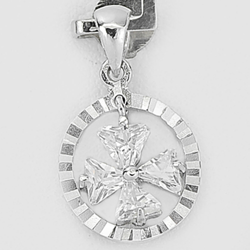 925 Sterling Silver Pendant Jewelry with CZ 4 Triangle Clear in Circle Design