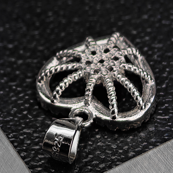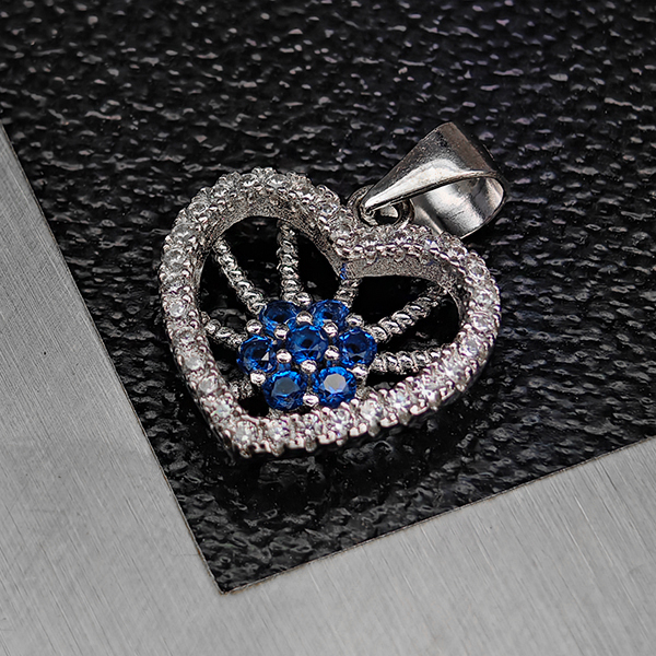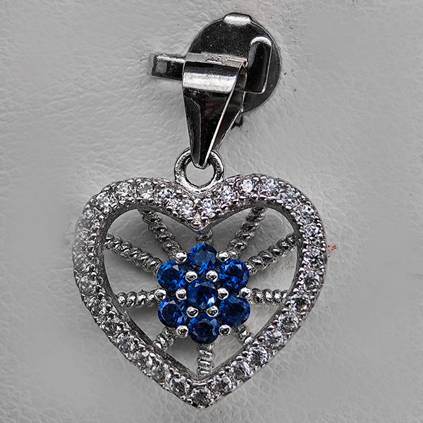 Real 925 Sterling Silver Flower And Heart Design Pendant with Blue white CZ