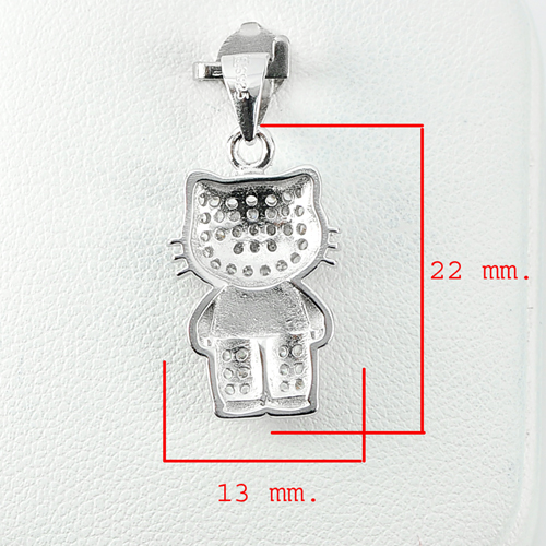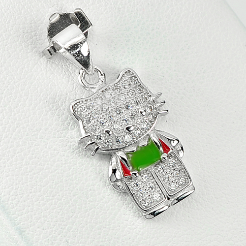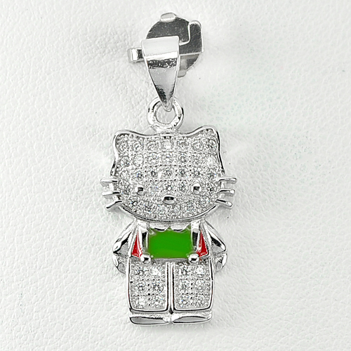Kitty Green Pink Enamel Design White CZ 925 Sterling Silver Jewelry Pendant