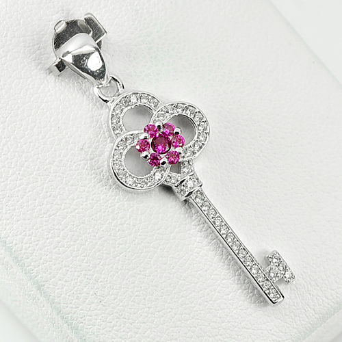 925 Sterling Silver Pendant Key And Flower Design Pink CZ 1 Pc/$6.99