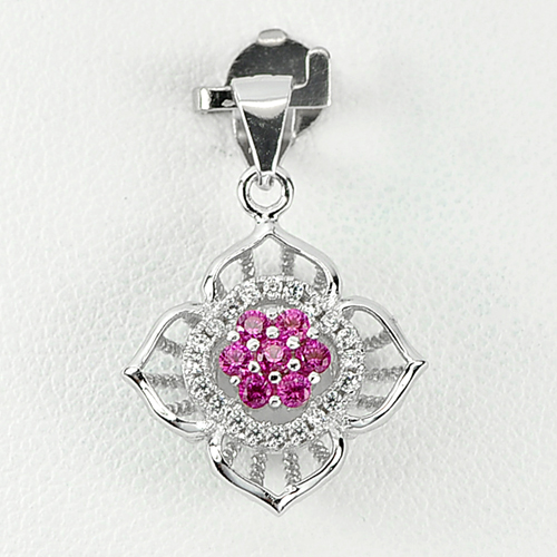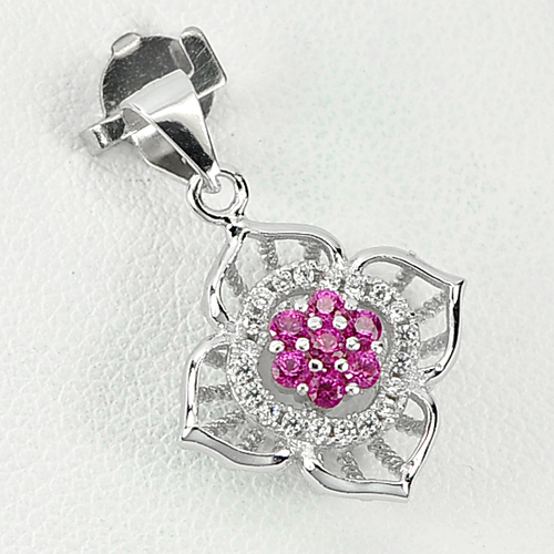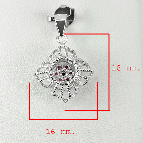 Lovely Flower Design Red White CZ 925 Sterling Silver Jewelry Pendant