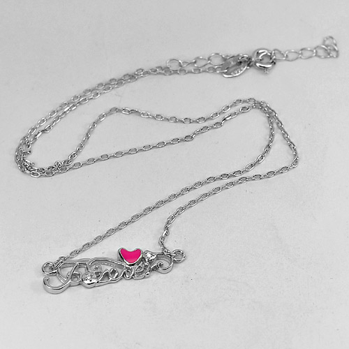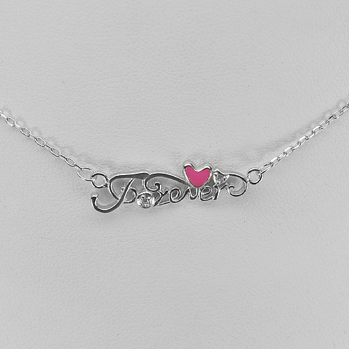 2.20G.Forever and Heart Pink Enamel Design 925 Sterling Silver Necklace 14 Inch.