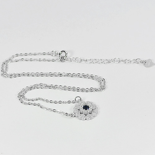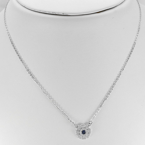 3.20 G. Flower Design with CZ Real 925 Sterling Silver Necklace Length 16 Inch.