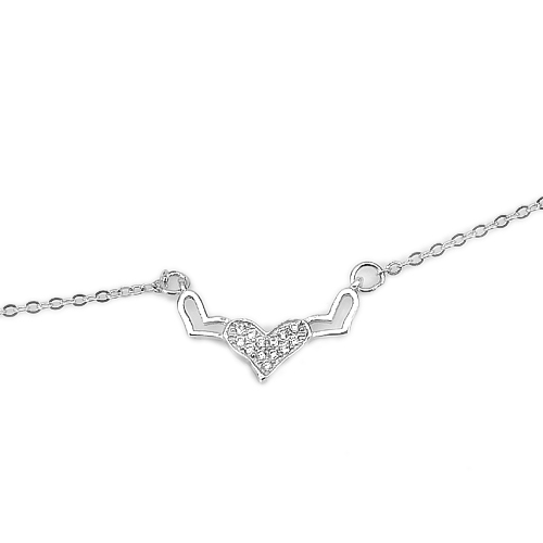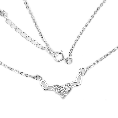 Real 925 Sterling Silver Necklace Length 16 Inch. Round White CZ Heart Design