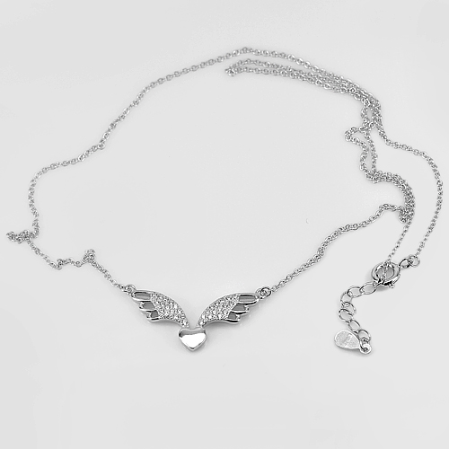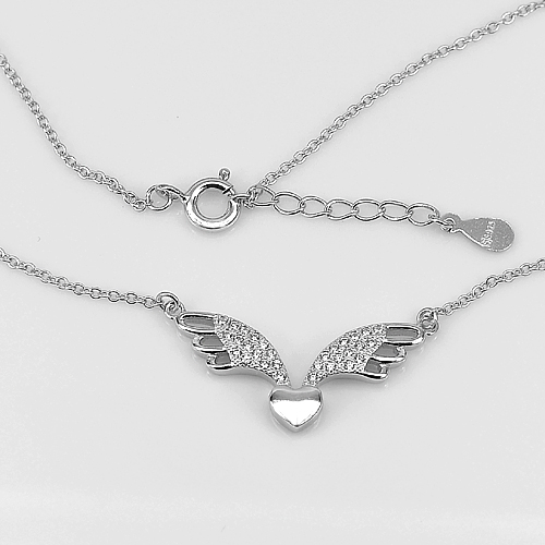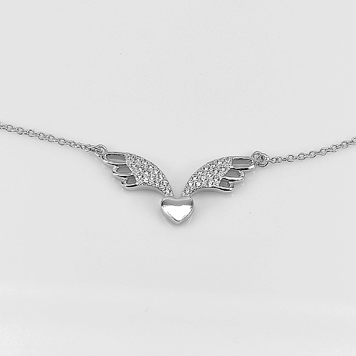 925 Sterling Silver Heart with wings Design Jewelry Necklace Length 16 Inch.